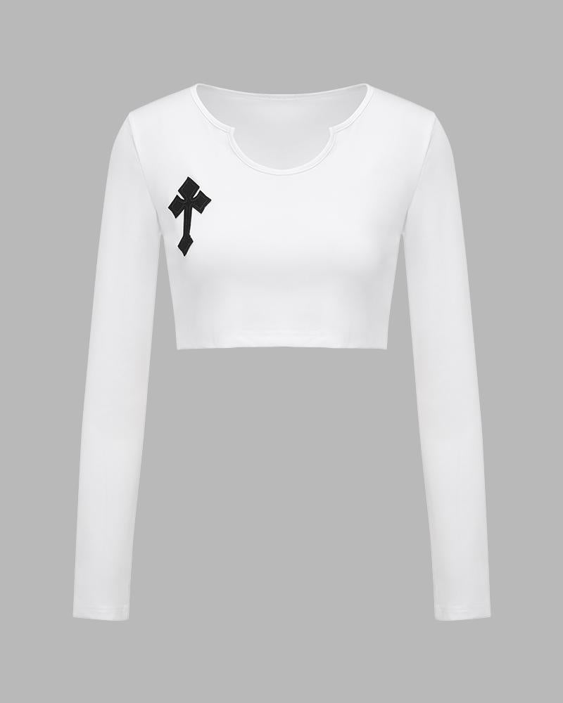 Details: Long-sleeve crop top with front crossing design