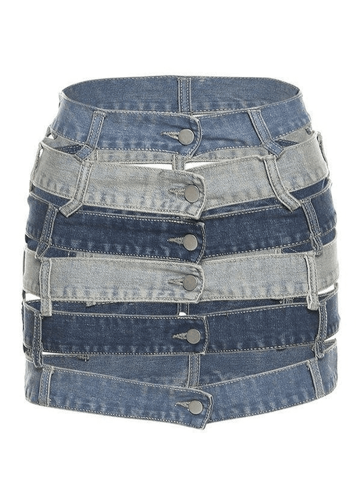 Style: Street Color: Blue Fabric Content: Cotton. Spandex Fit Type: Slim fit Length: Above Knee Design: Front Button Fastening. High Rise Waistline. Cutout At Front & Back. Pockets At Back. Multi Belt Loops