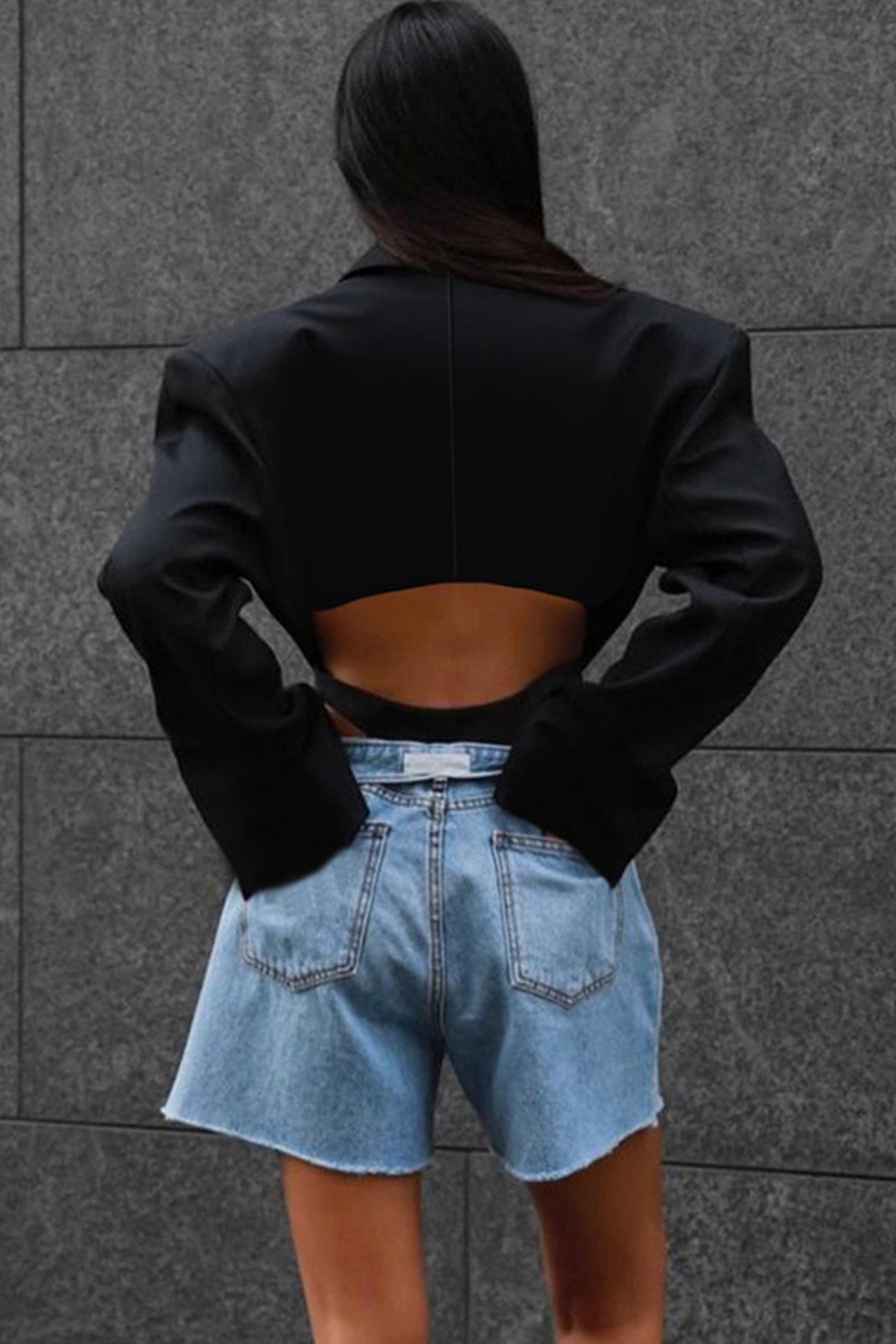Black Shoulder Pad Suit Tops