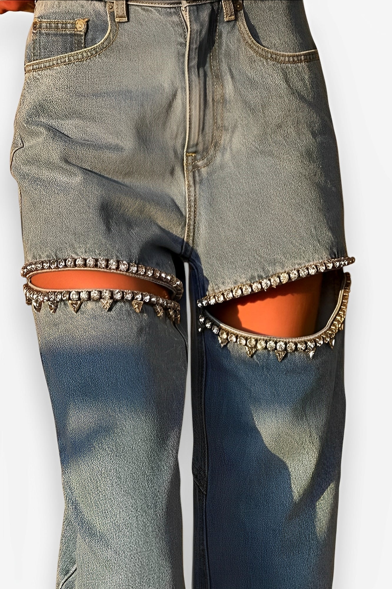 Take the plunge with our Blue Ripped Straight-Leg Jeans! Dare to be bold and add some edge to your wardrobe. These jeans feature a trendy distressed design and a flattering straight-leg fit. Perfect for those who like to take risks and stand out from the crowd!