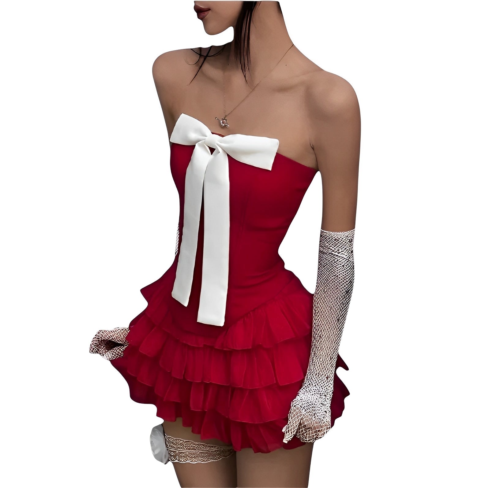 Get ready to make a bold fashion statement with our Bow Vest Spliced Lotus Leaf Dress! This dress features a unique design with a bow vest and spliced lotus leaf detailing. perfect for those who like to take risks and stand out from the crowd. Make a statement and embrace your adventurous side with this dress!