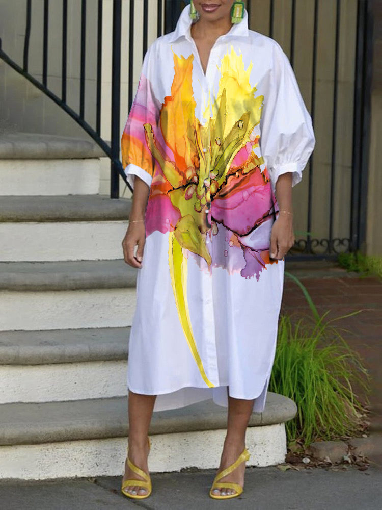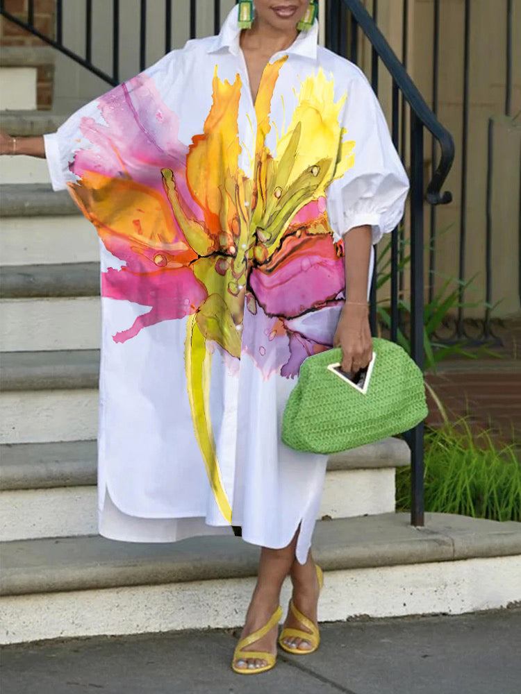 | Feature | Flower Print . Buttoned . Contrast Color |