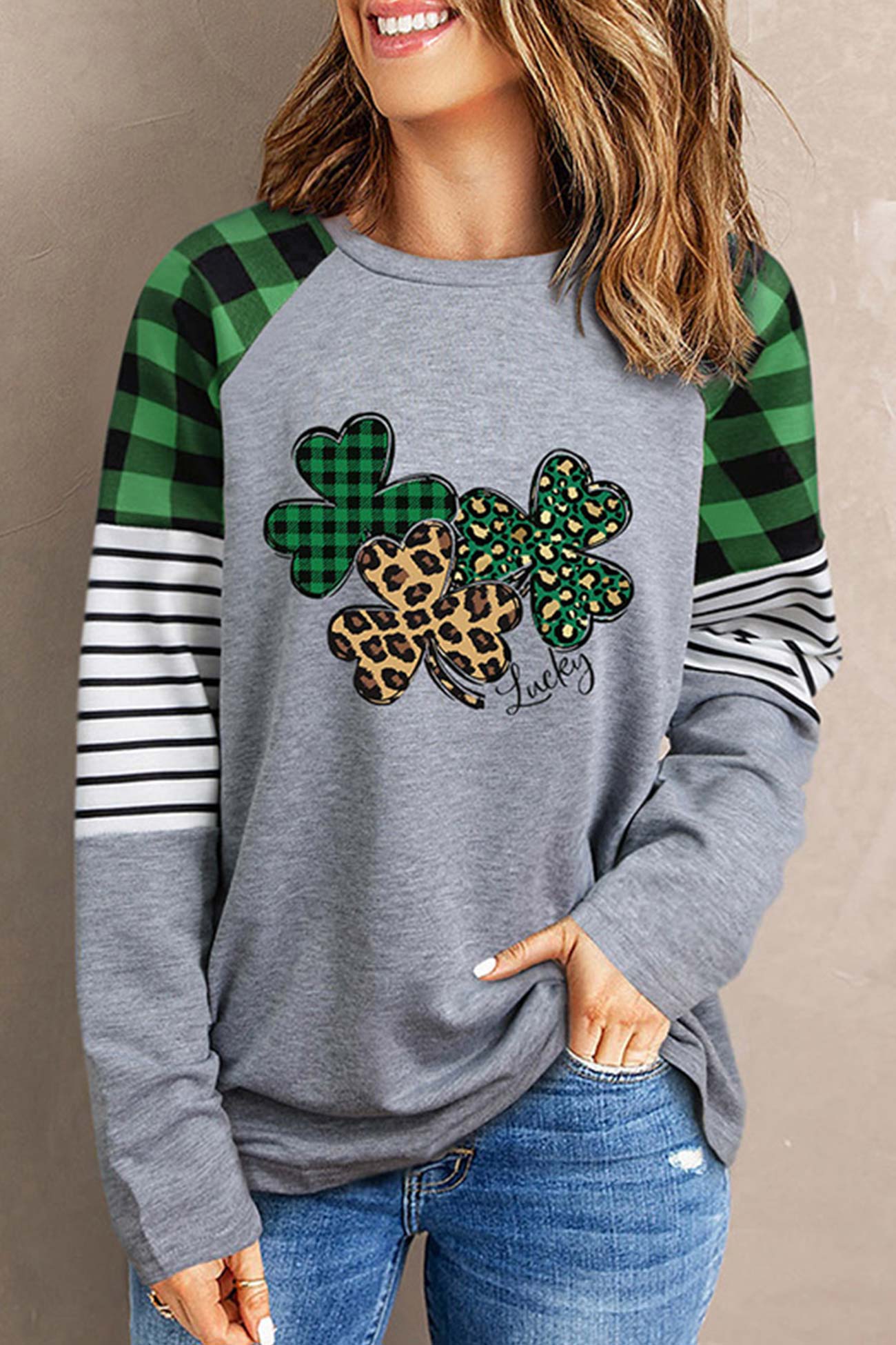 Decrease quantity for Clover Striped Patchwork Sweatshirt