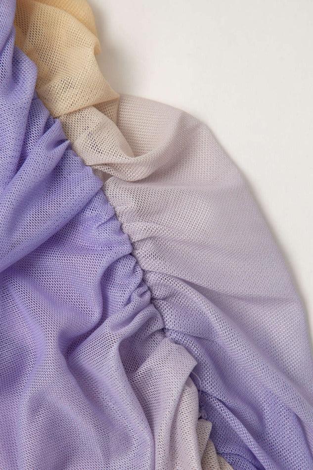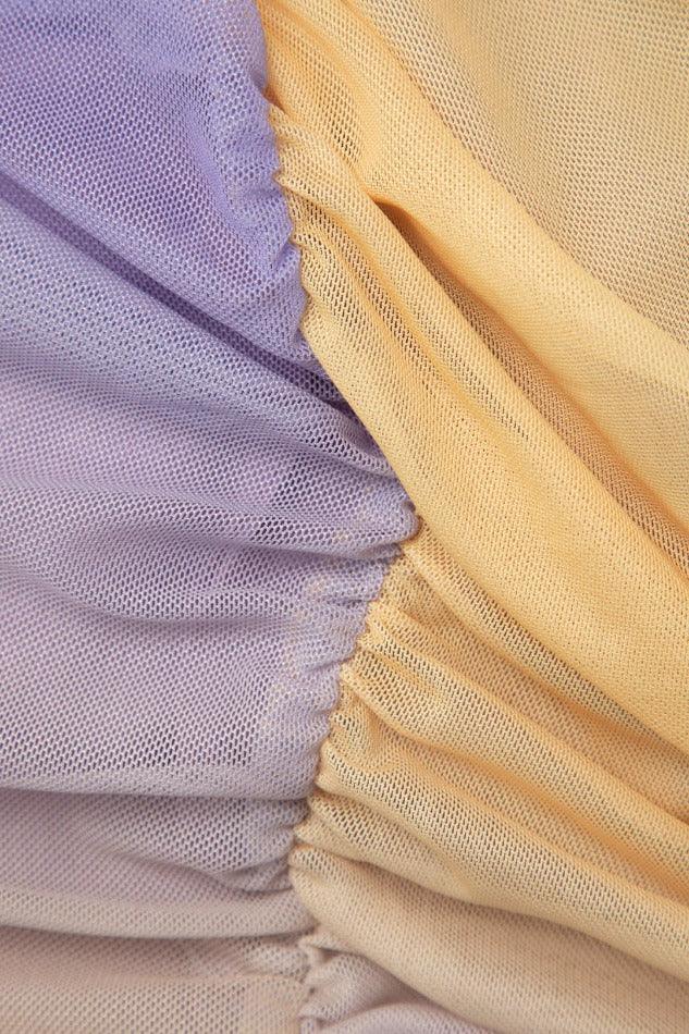 Increase quantity for Color Block Mesh Ruched Strapless Mini Dress