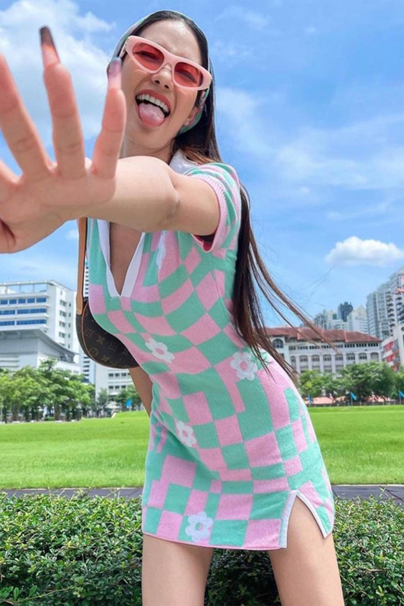 Decrease quantity for Contrast Color Plaid Mini Dress