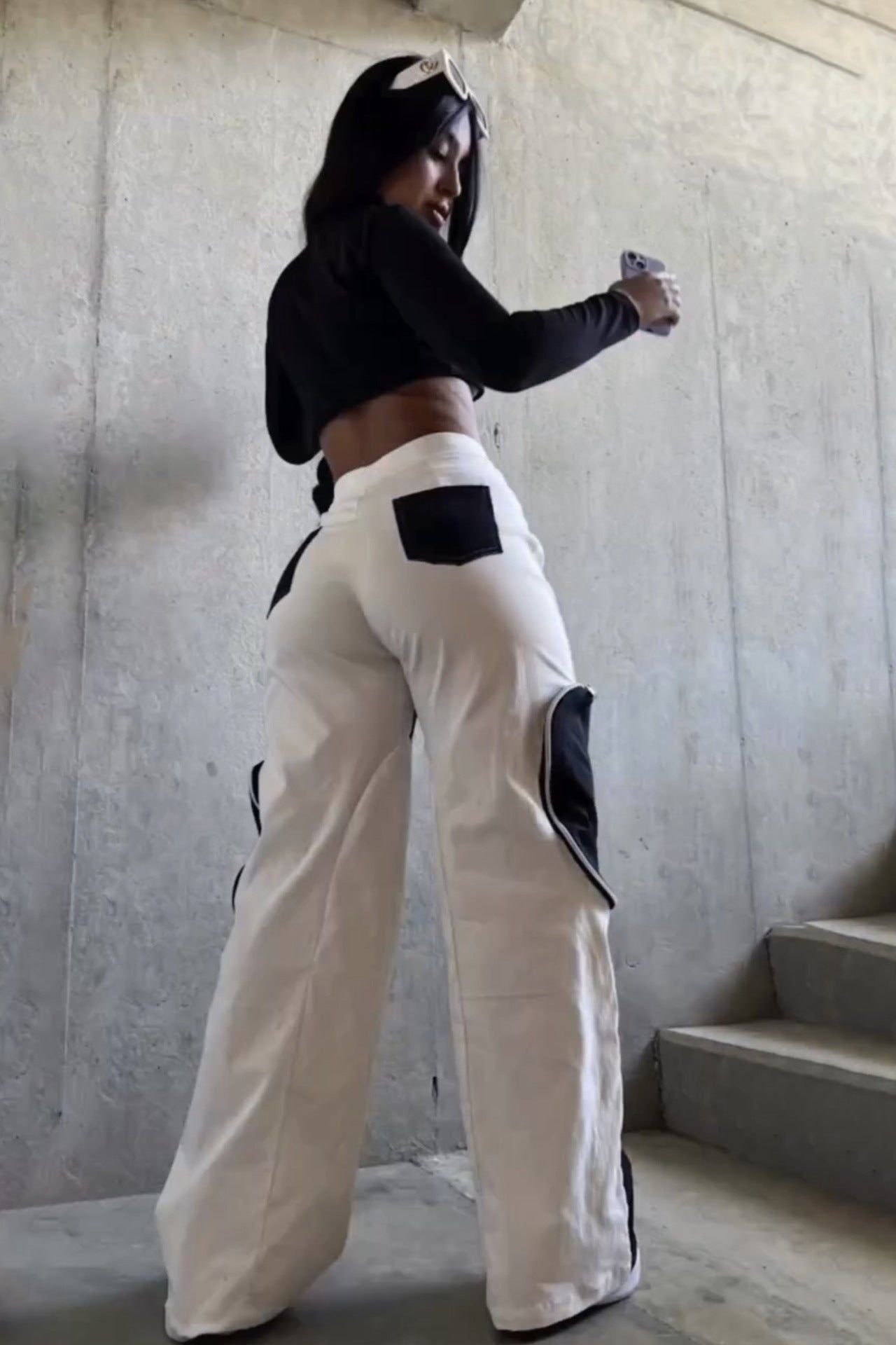 Upgrade your wardrobe with our Contrast Pocket High Waist Straight Pants. These stylish pants have a high waist design that flatters your figure and straight cut for a sleek look. The contrasting pockets add a unique touch. perfect for elevating any outfit. Made from high-quality materials for comfort and durability.