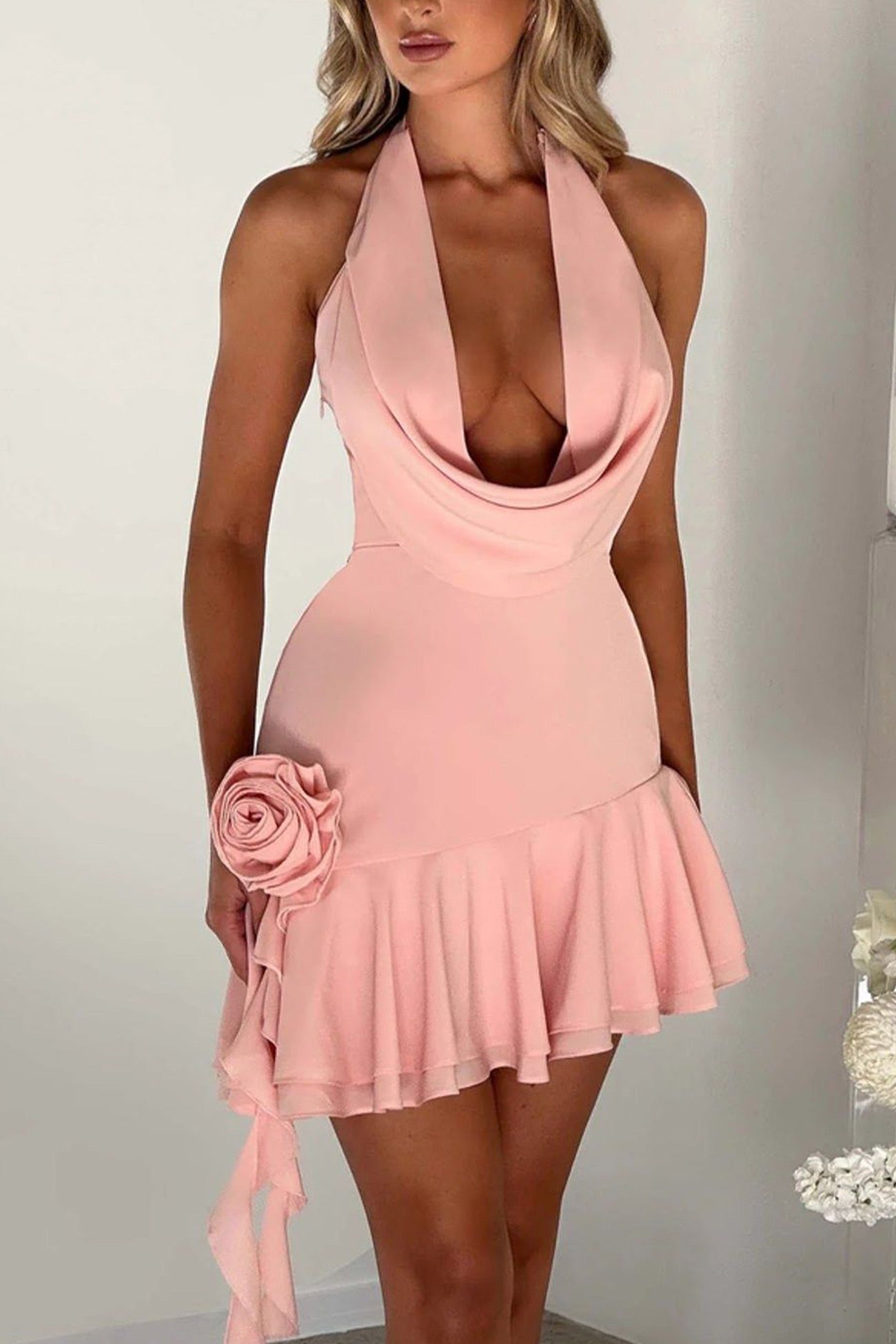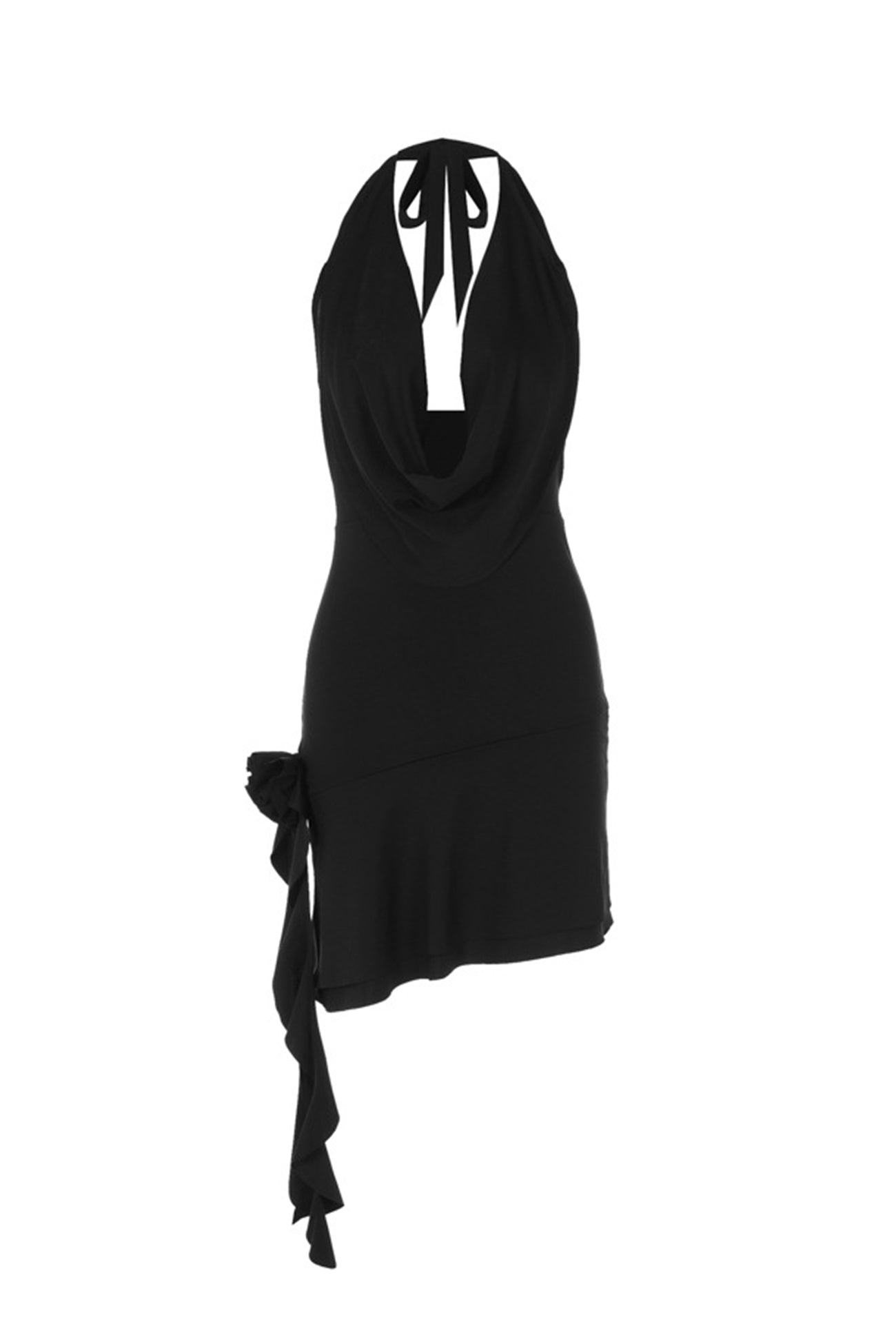 Increase quantity for Cowl Neck Floral Ribbon Ruffle Dress