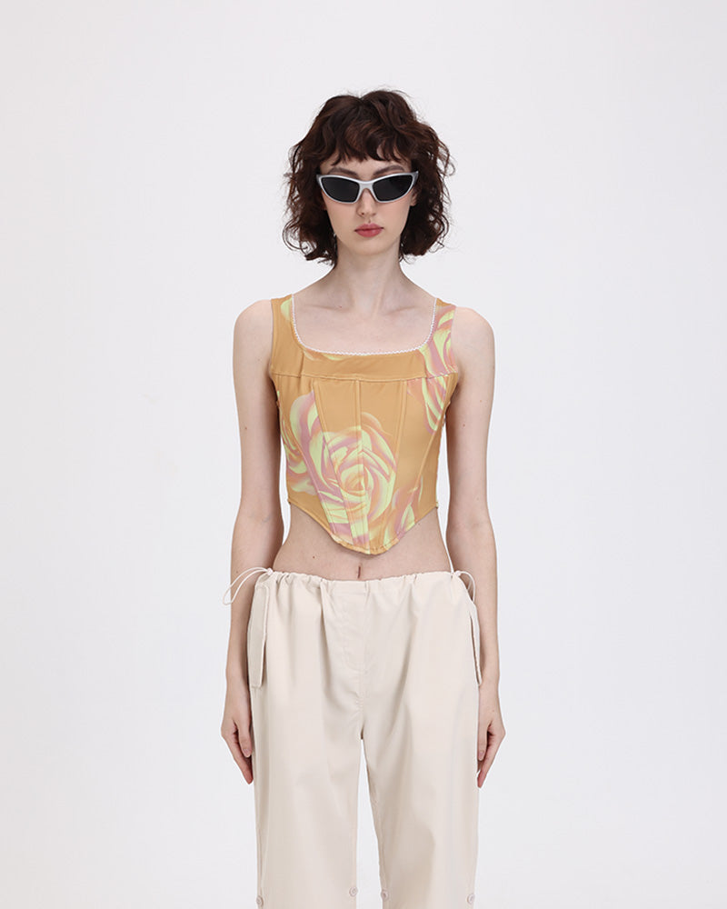Details: Square neck corset top with floral print