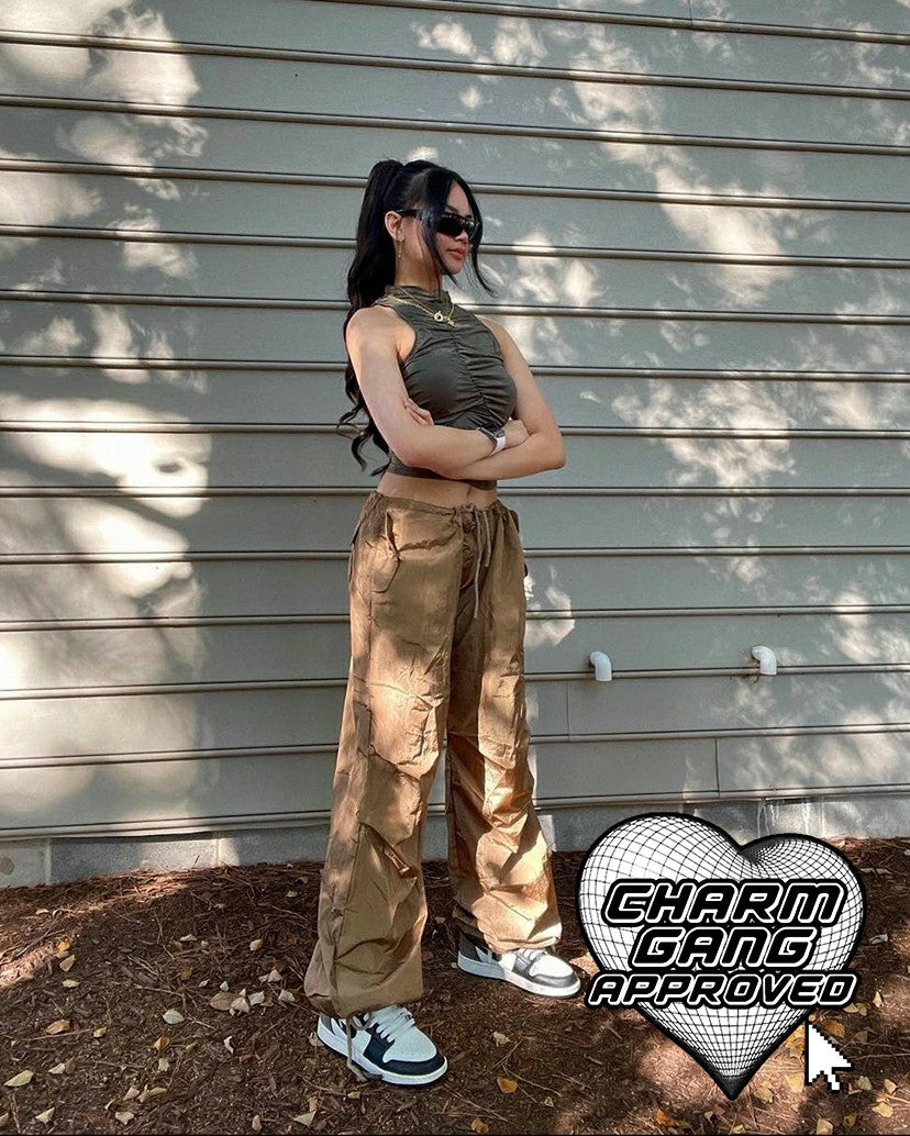 Details: Green tank top with ruched design