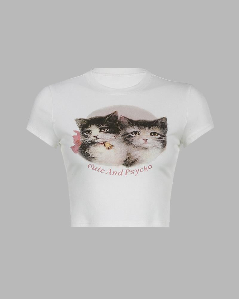 Details: Short-sleeve T-shirt with cute cat graphical design