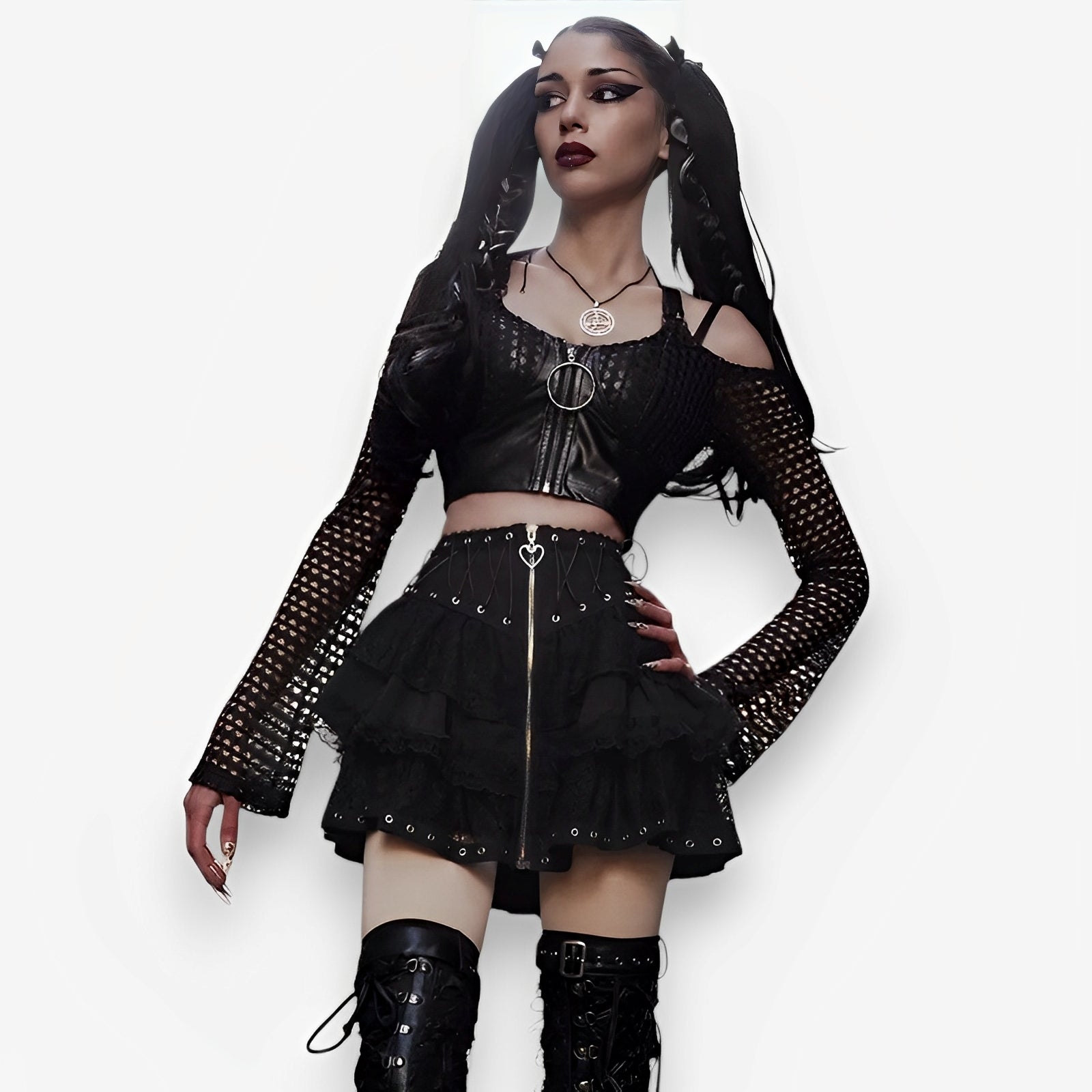 Experience bold adventure and challenge in our Dark Gothic Style Waist Strap A-Line Skirt. Made with a dramatic A-line cut and featuring a waist strap for added flair. this skirt will elevate your style to new heights. Perfect for those who like to take risks and stand out from the crowd.