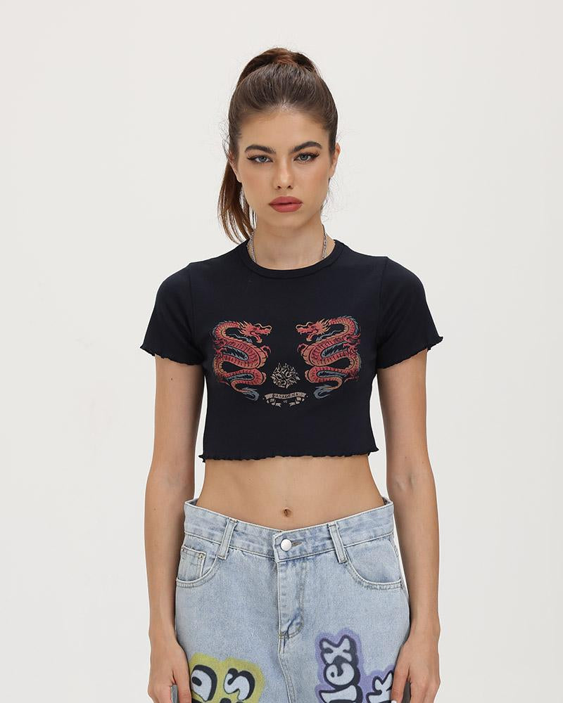Details: Cropped T-shirt with front dragon images
