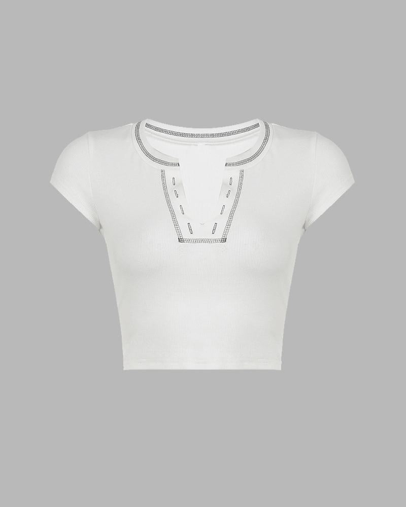 Details: Short-sleeve top with ribbed design