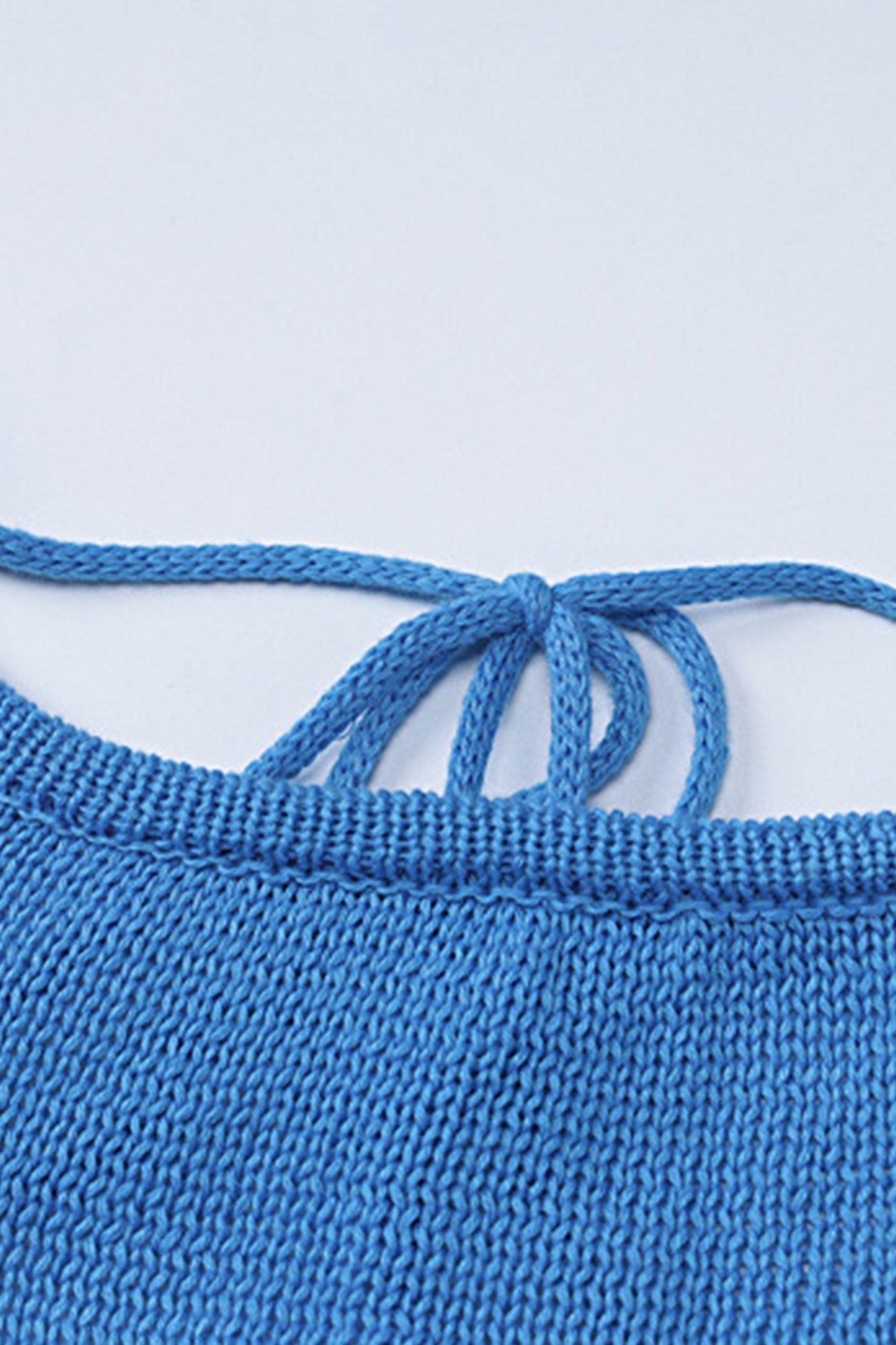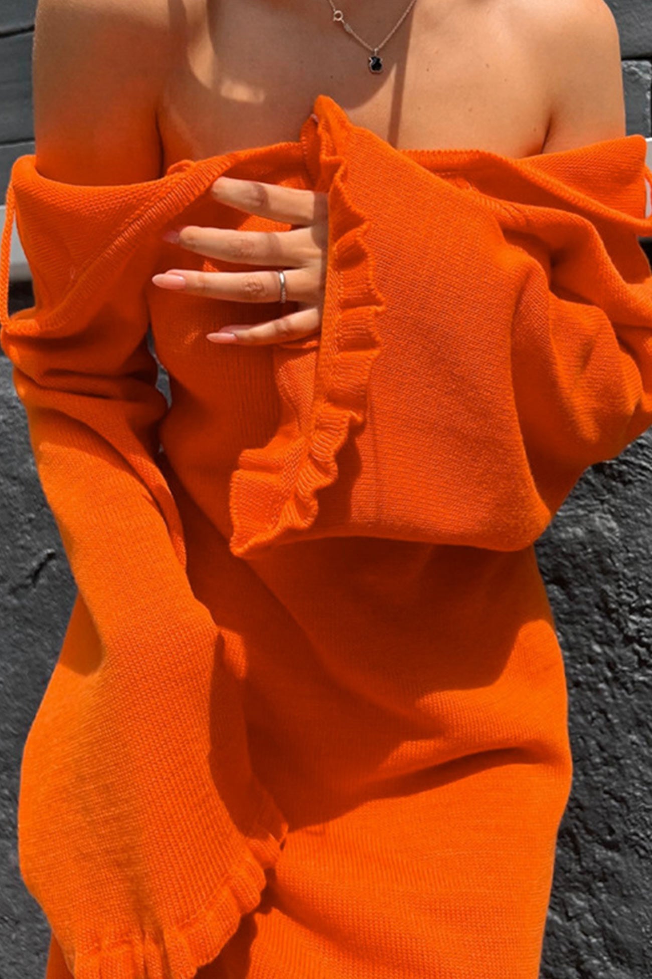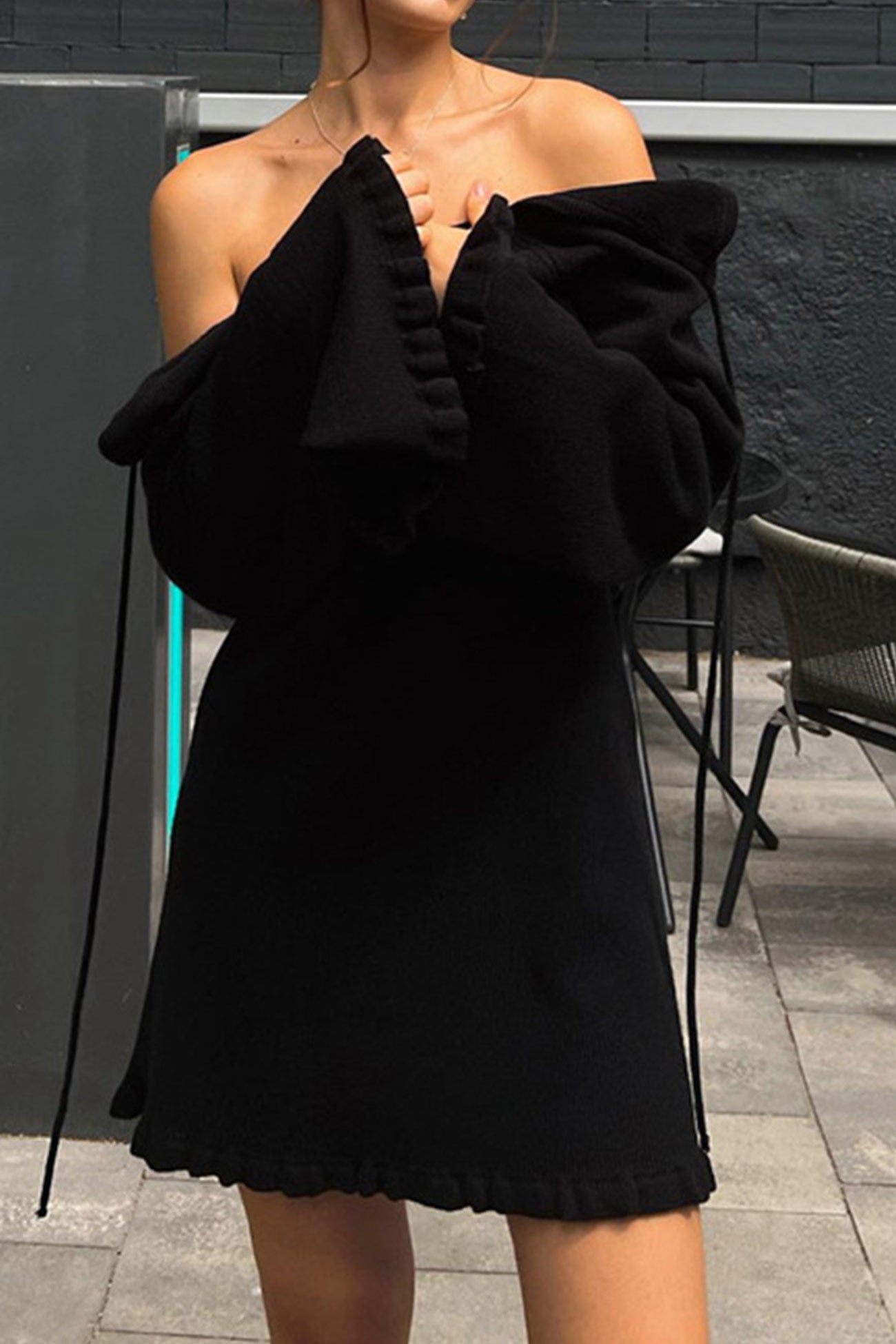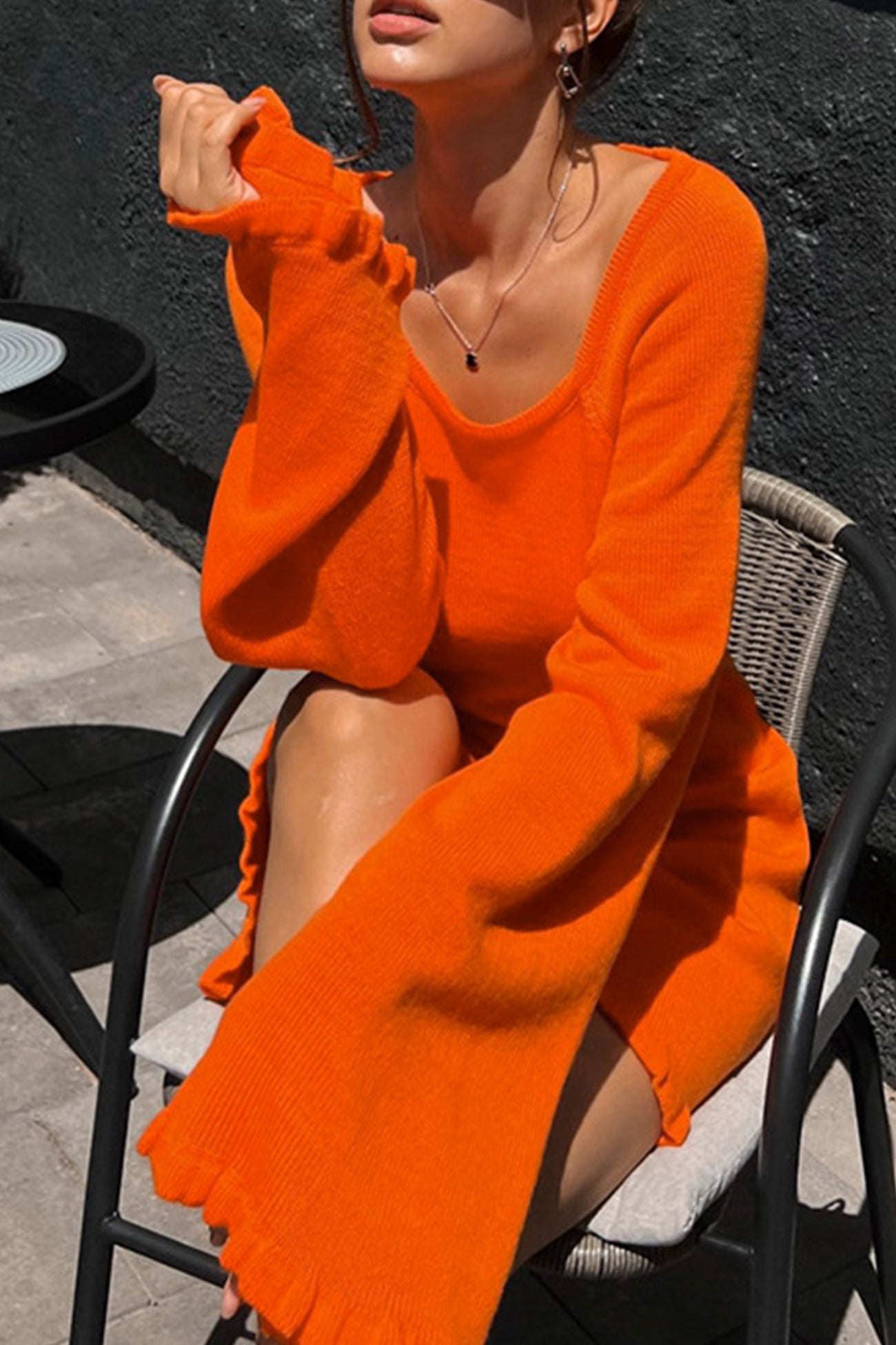 Flares Sleeve Tie-back Ruffle Hem Knit Dress