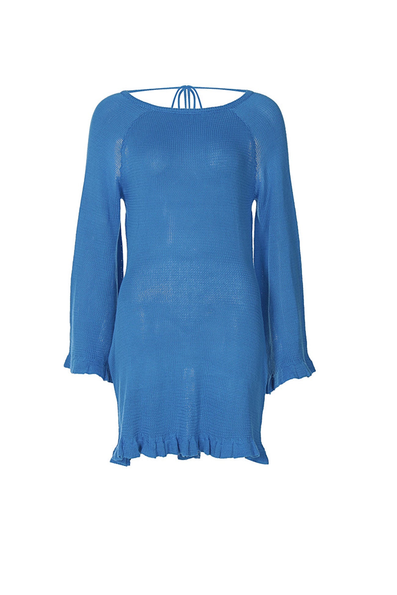 Increase quantity for Flares Sleeve Tie-back Ruffle Hem Knit Dress