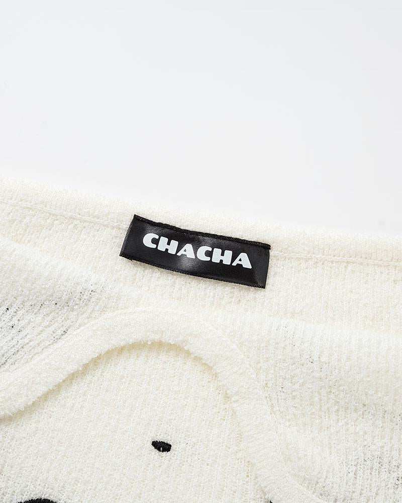 Details: Knitted tube top with graphical design