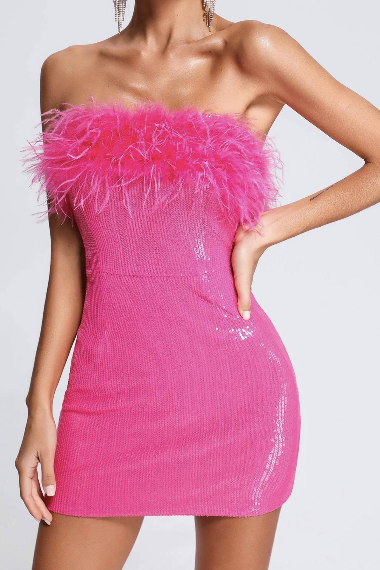 Increase quantity for Fuzzy Strapless Sequins Pack Hip Dress
