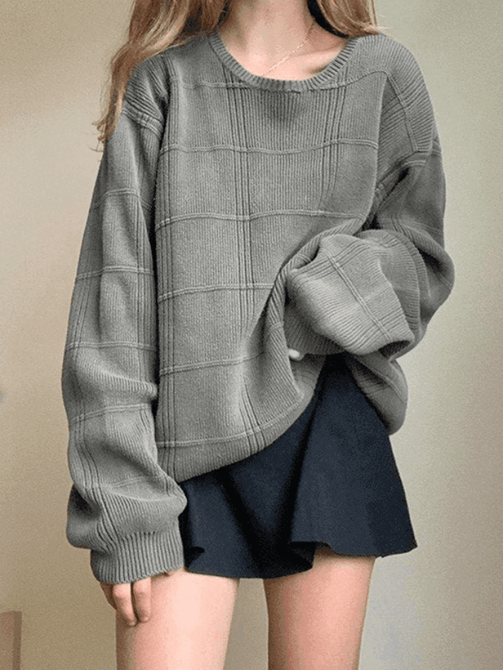 Description: Add some staple and versatile jumpers for go-to fall outfits. These relaxed jumpers featured plaid pattern jacquard. and dropped long sleeves design. ended with classic rib trims detailing.