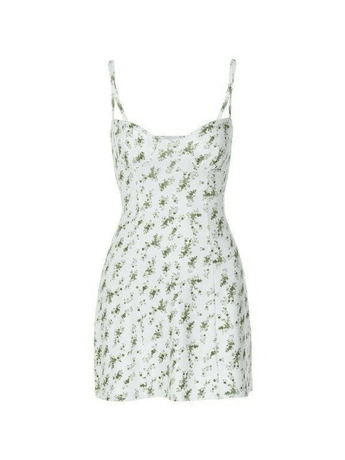 Description: Features dainty floral print all over. shaped to a bodycon silhouette. with adjustable shoulder straps and an open-back design.