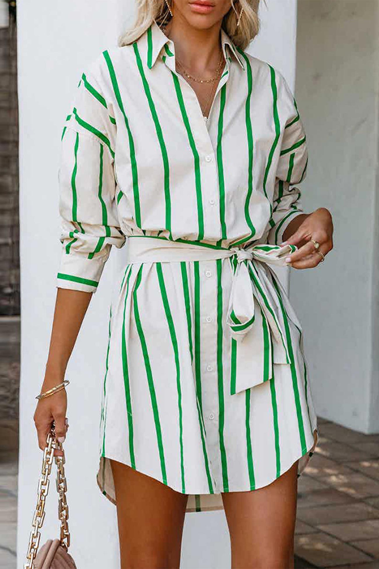 Increase quantity for Green Striped Print Lace-up Shirt Dress