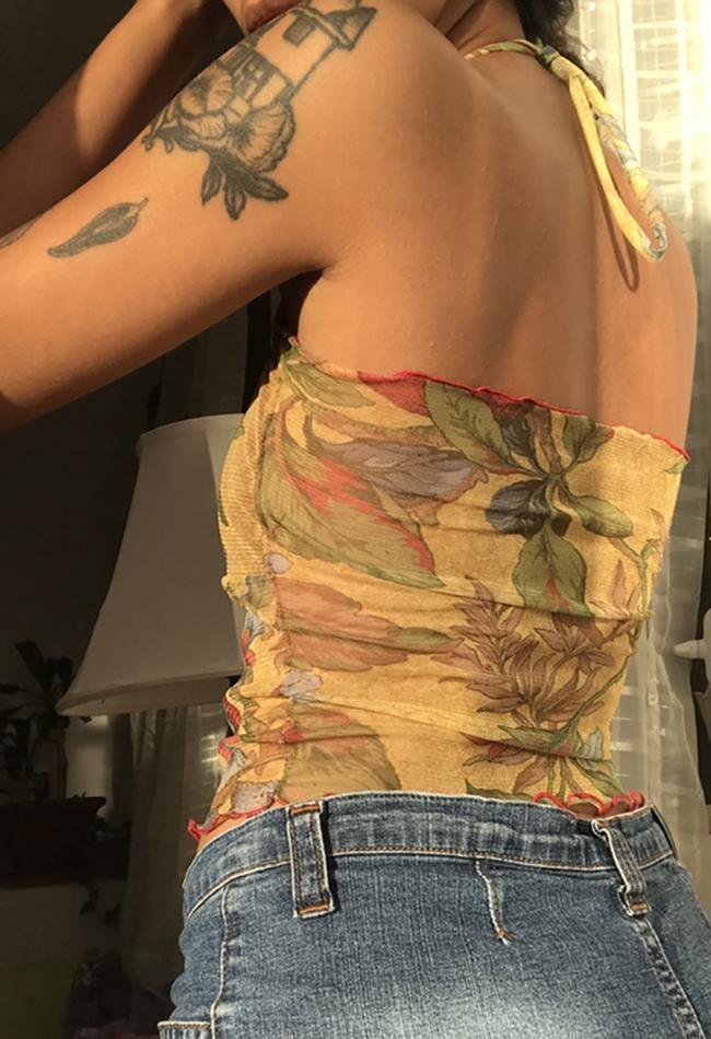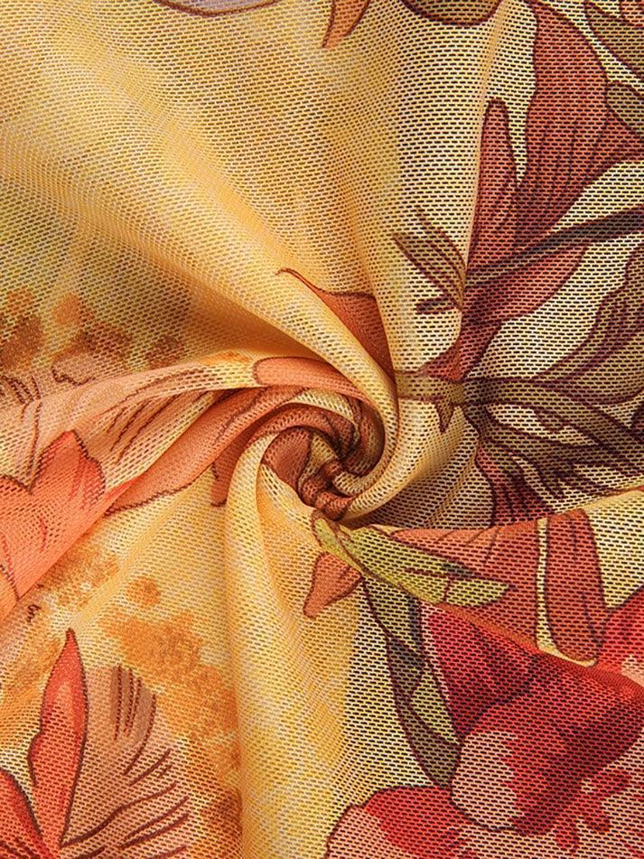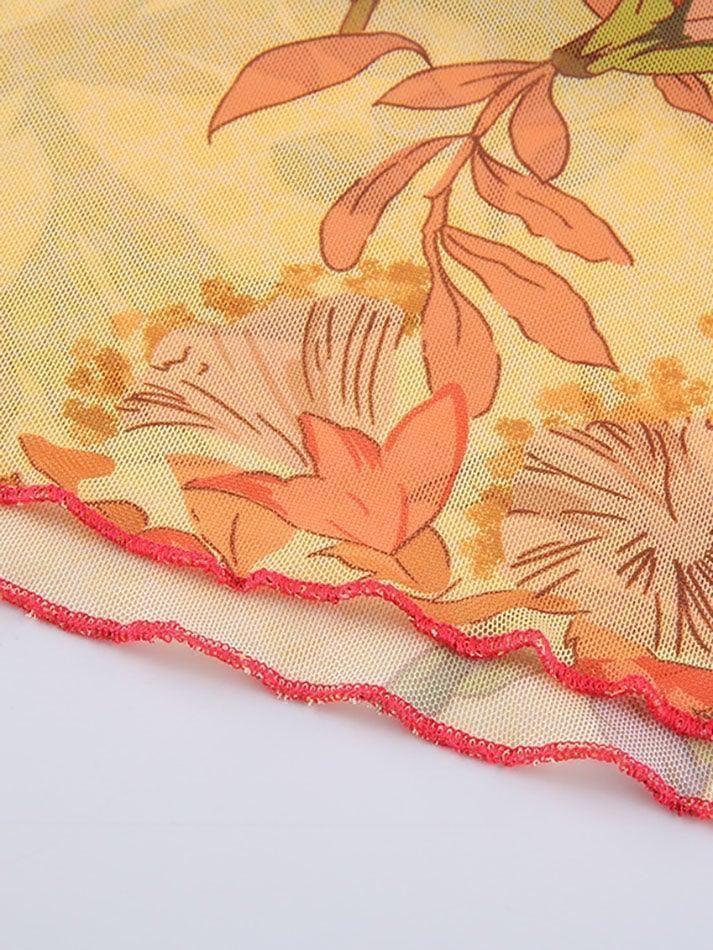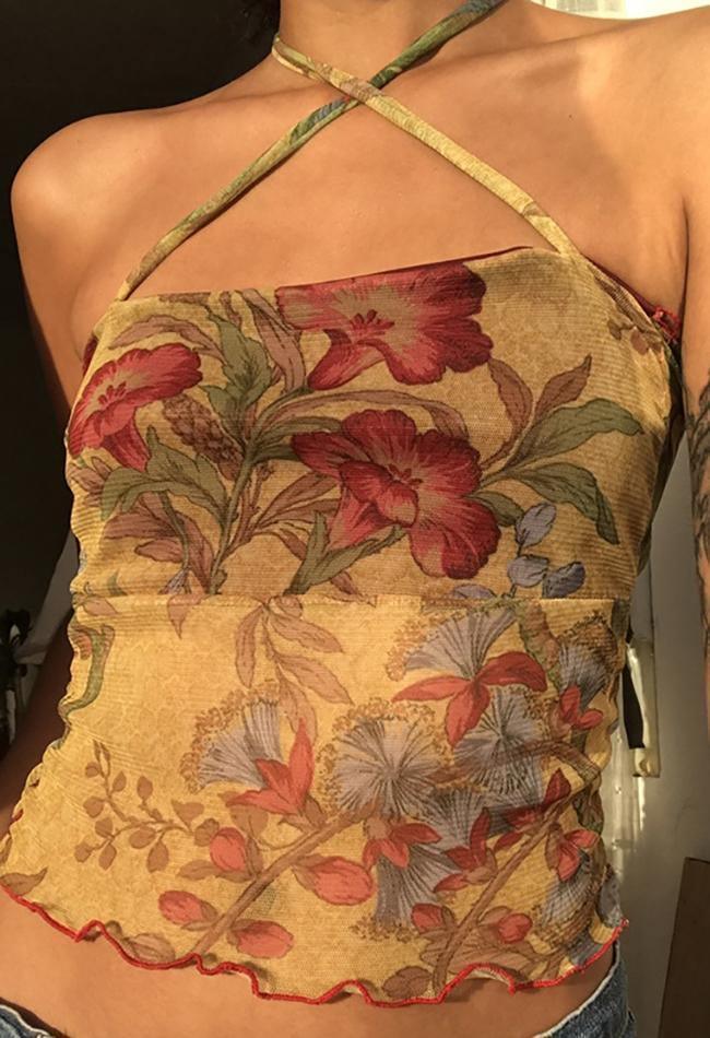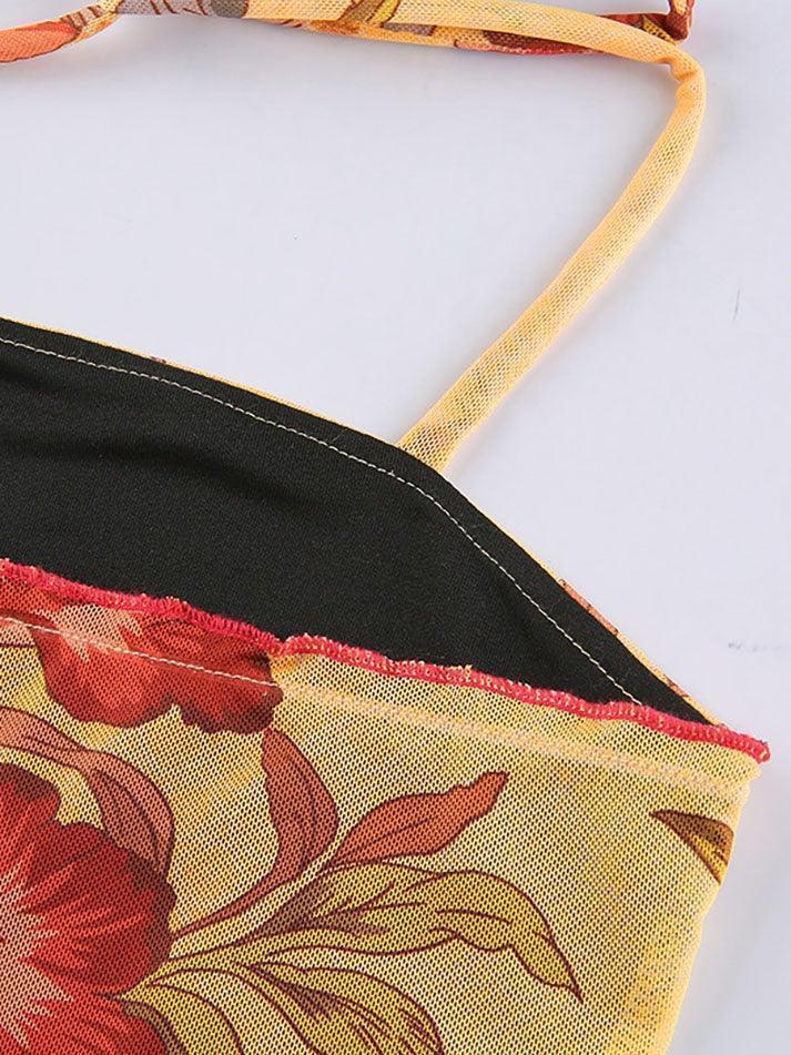 Style: Sexy Fabric Content: Polyester. Spandex Fit Type: Slim fit Neckline: Halterneck Sleeve Length: Sleeveless Design: Adjustable Tie Strap At Back. Allover Floral Print. Can Be Worn Straight/Halter Neckline