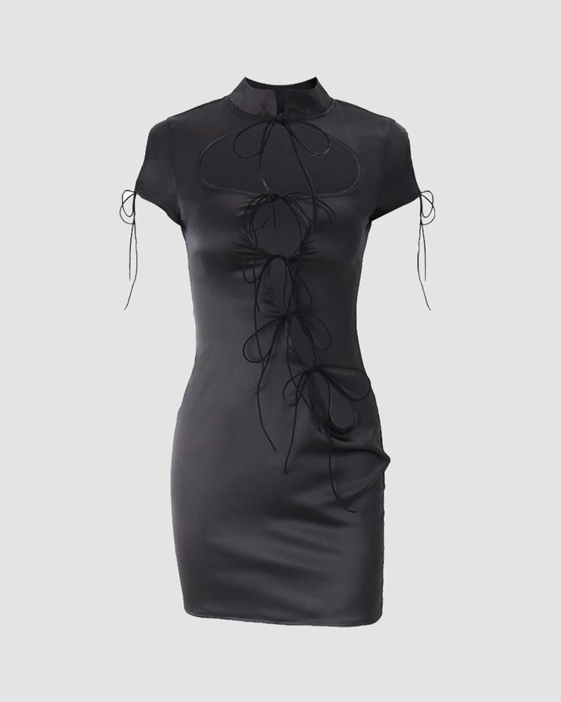 Details: Short dress with front cut-out design