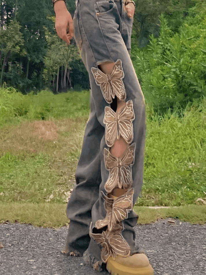 Eye-Catching Butterfly and Hollow Hole Design: The jeans feature captivating butterfly and hollow hole designs. adding an alluring and distinctive element to your outfit.