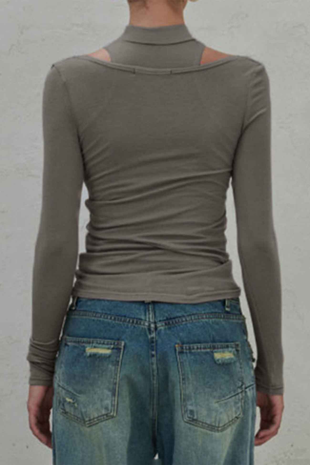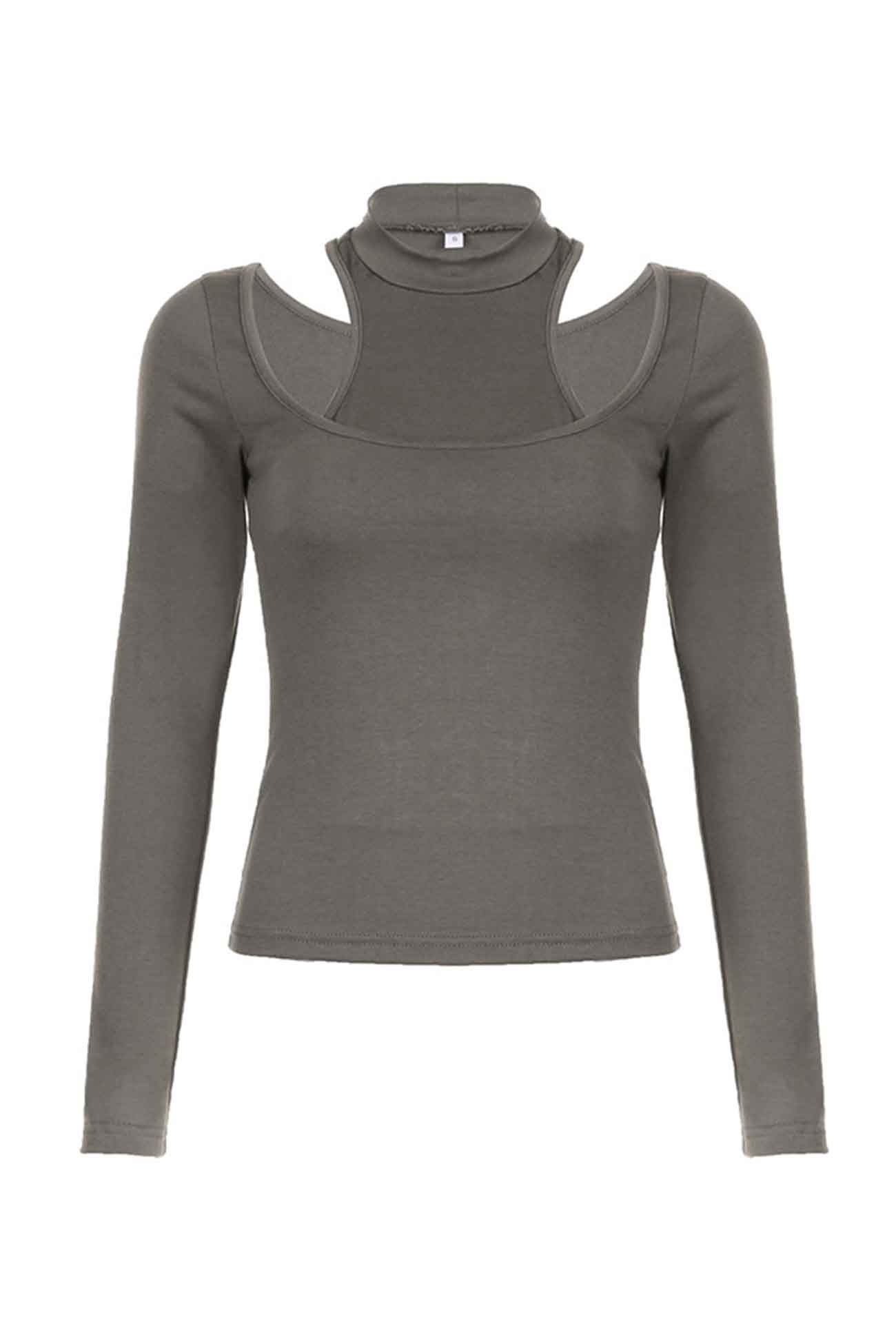 Hollow Half Turtleneck Two Piece Top