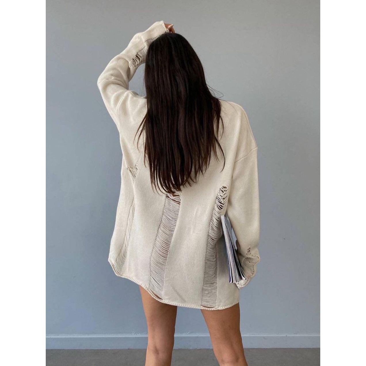 Unleash your daring side with our Hollow Knitted Pullover Hole Sweater! This unique sweater combines bold style with ultimate comfort. The hollow knitted design adds an edgy touch. while the pullover style makes it easy to wear. Take a risk and stand out in this must-have sweater!