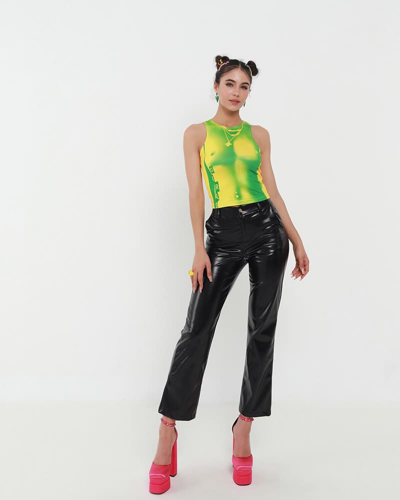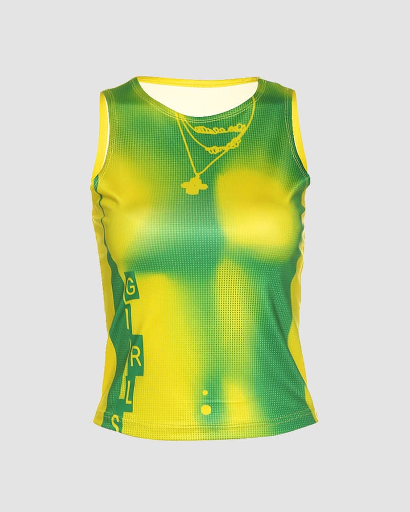 Details:Y2K-inspired Abstract Body Print Tank Top