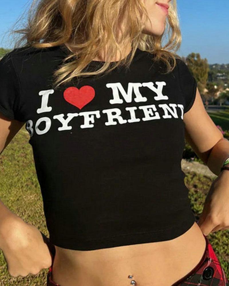 Details: T-shirt with "I Love My Boyfriend" meme letter print