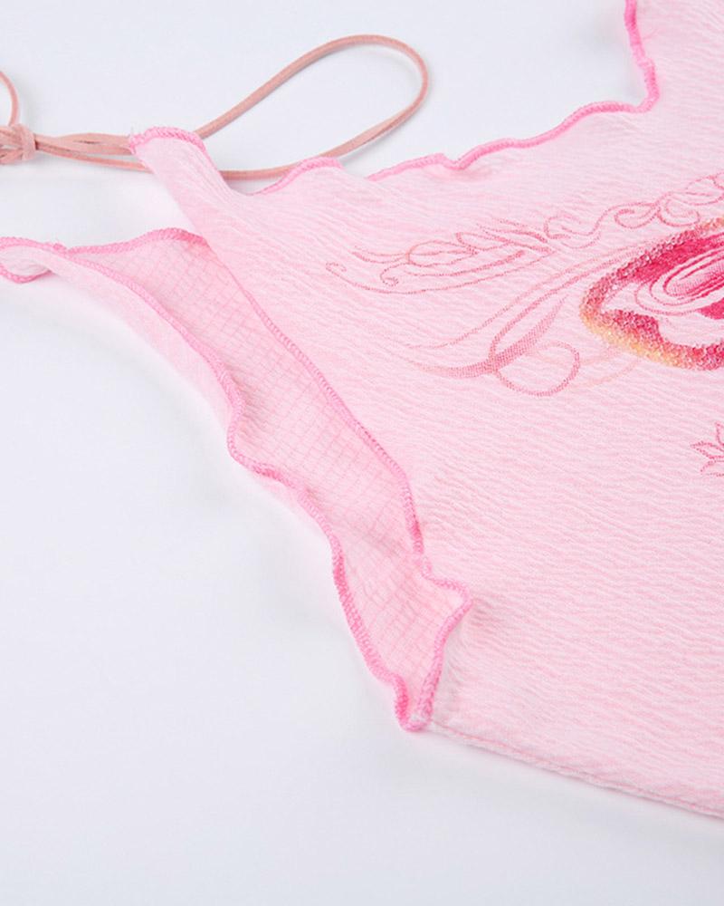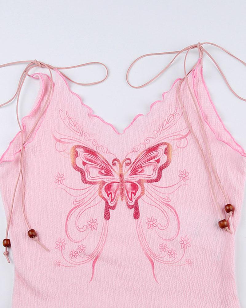 Details: Cami top with front butterfly graphical design