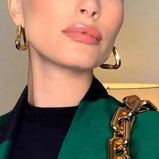 This high fashion piece is a must have to complete your classy look. a triangle with soft angels and twisted bar earrings is a sophisticated addition to your collection.