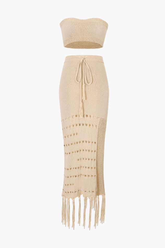 Increase quantity for Knit Tube Top And Tassel Hem Skirt Set