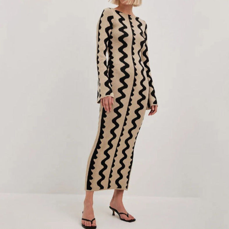 Bring sophistication and style to your wardrobe with our New Wave Knitted Maxi Dress. Crafted with an elegant cut-out design. flowy flare long sleeves and delicate knitted detailing. you will make a stunning statement in this timeless piece. With its luxurious feel and timeless style. this dress is the perfect addition to your wardrobe.