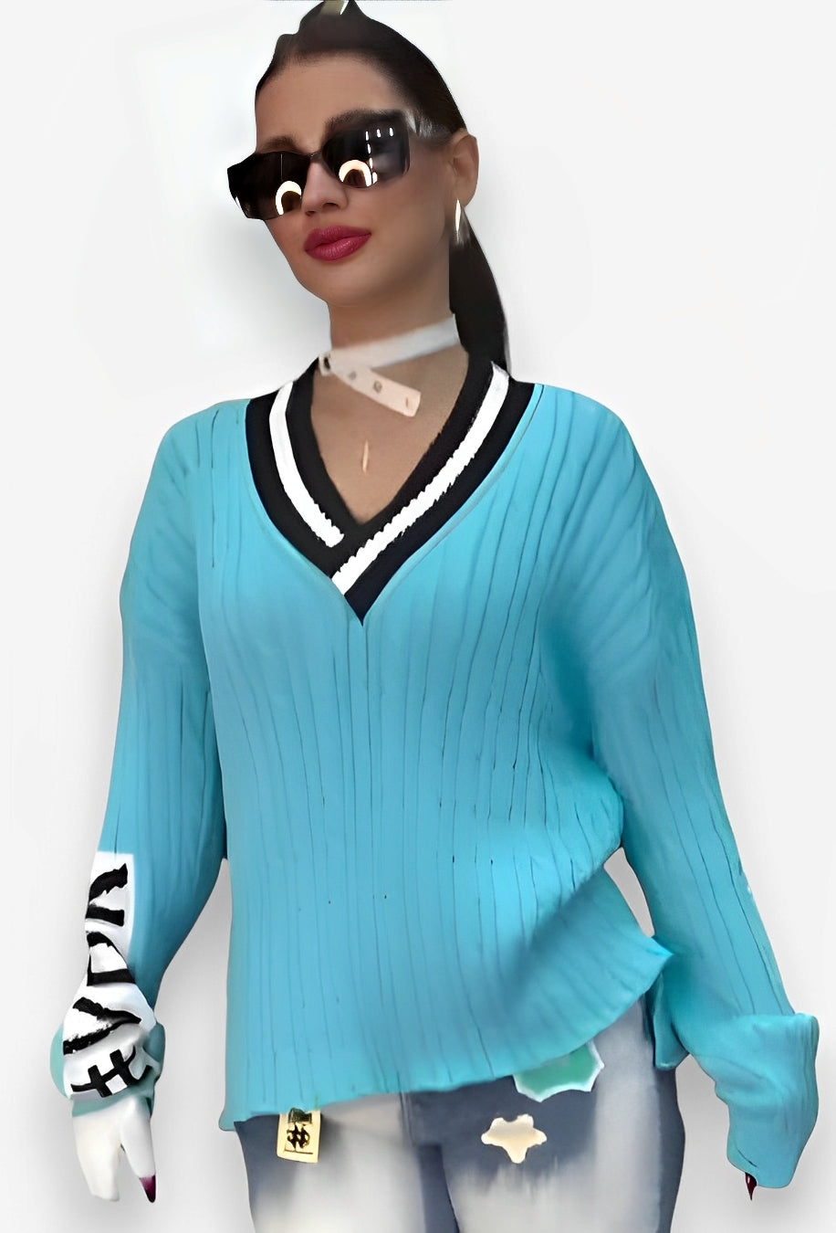 This knitted V-neck letter sweater is the perfect combination of style and comfort. With its soft material and classic V-neck design. you'll look effortlessly chic while feeling cozy. The bold letter detailing adds a personalized touch to make it truly yours. Elevate your wardrobe with this must-have sweater!