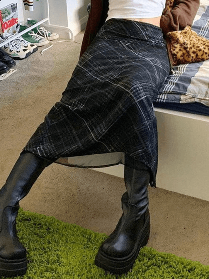 Layered Checked Midi Skirt
