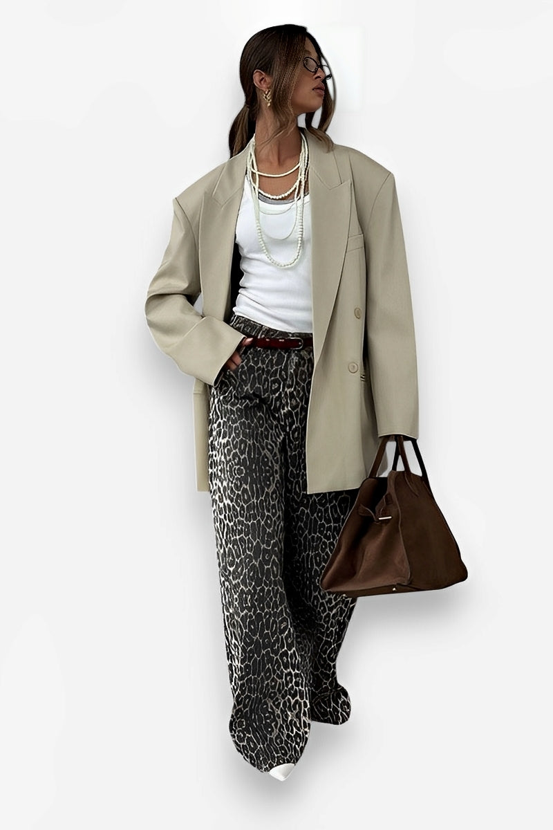 Be bold and stand out with our Leopard Design Loose Wide-leg Trousers! These trousers feature a daring leopard design and a loose. wide-leg fit that allows for freedom of movement. Perfect for those who like to take risks and embrace adventure. So why settle for plain pants when you can make a statement? Lead the way with our Leopard Design Loose Wide-leg Pants!