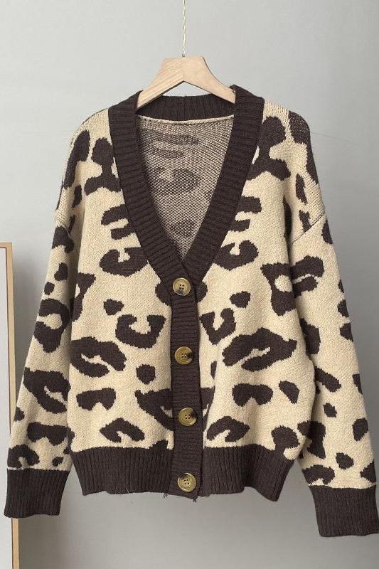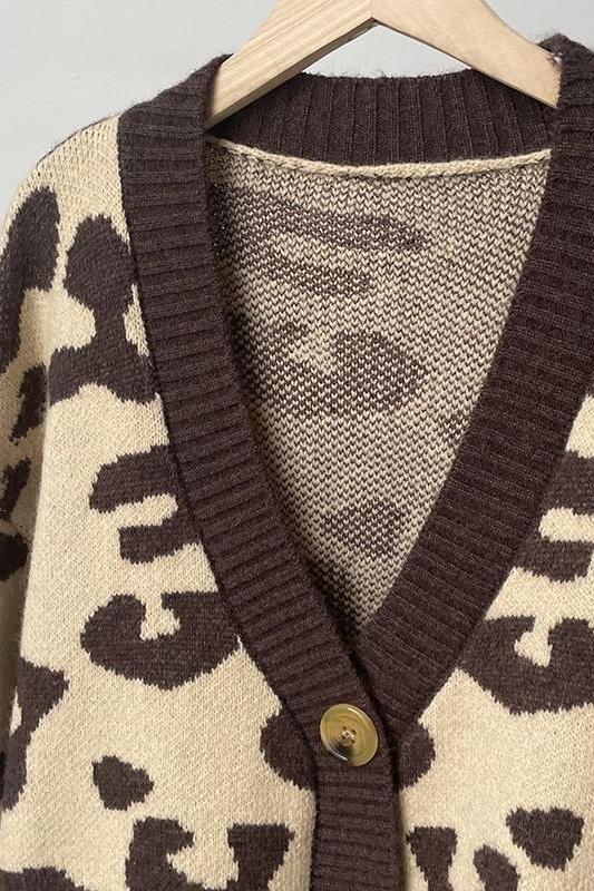 Elevate your style with this fierce and fearless Leopard Print Soft Knitted V-neck Sweater. Crafted from soft knitted fabric. this sweater adds a touch of adventure to any outfit. Get ready to stand out and take on any challenge with confidence!