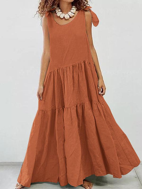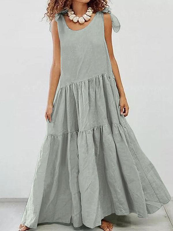 Linen cotton fabric.sleeveless with large swing. make you feel comfortable. It is easy to wear. Must buy items!