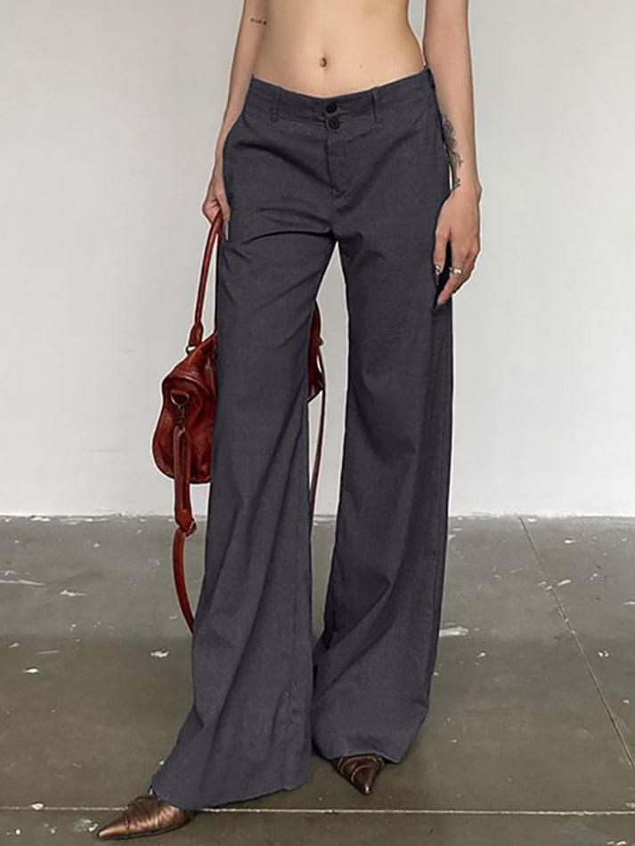 Low Waist Plain Slim-Fit Boot-Cut Pants