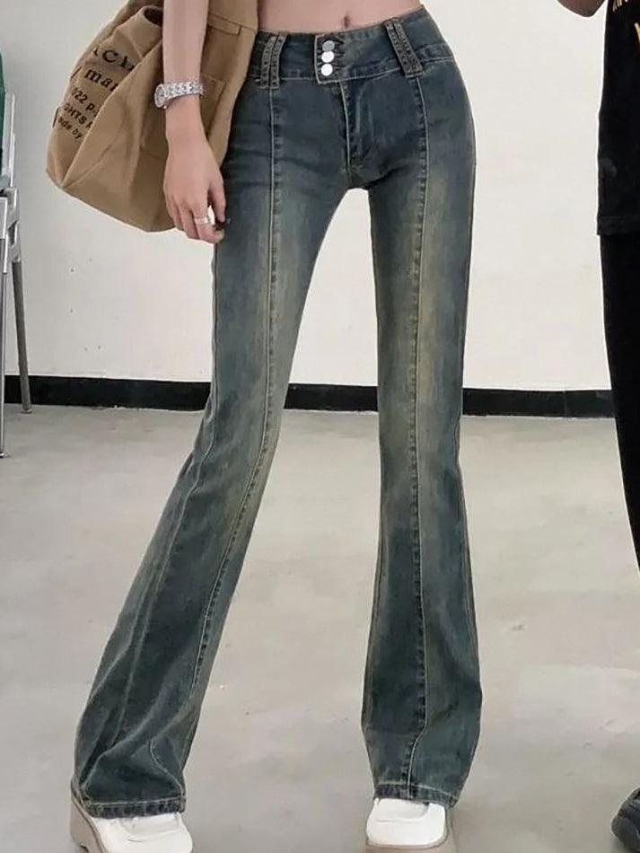 Low Waist Washed Slim-Fit Boot-Cut Jeans
