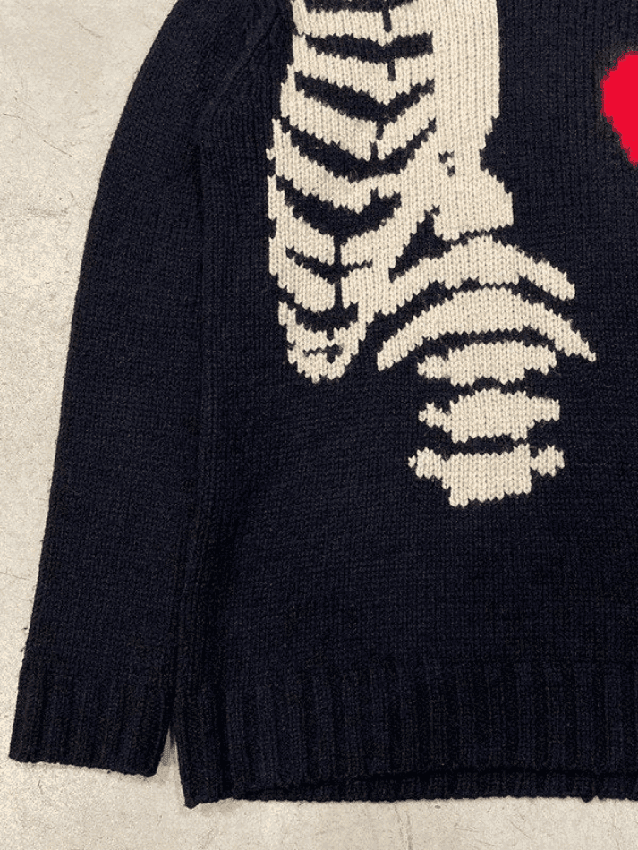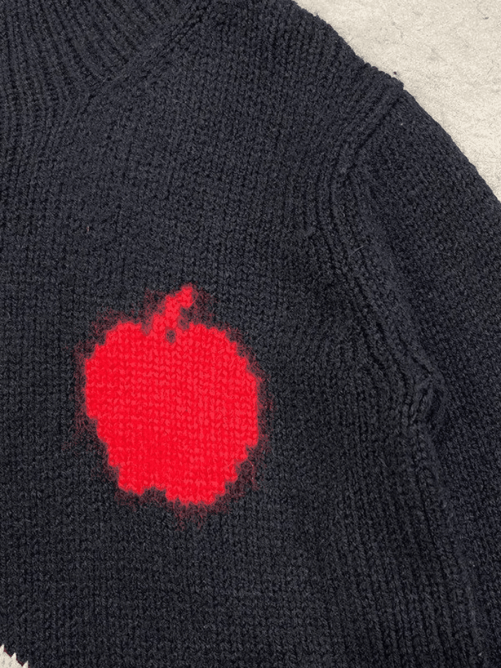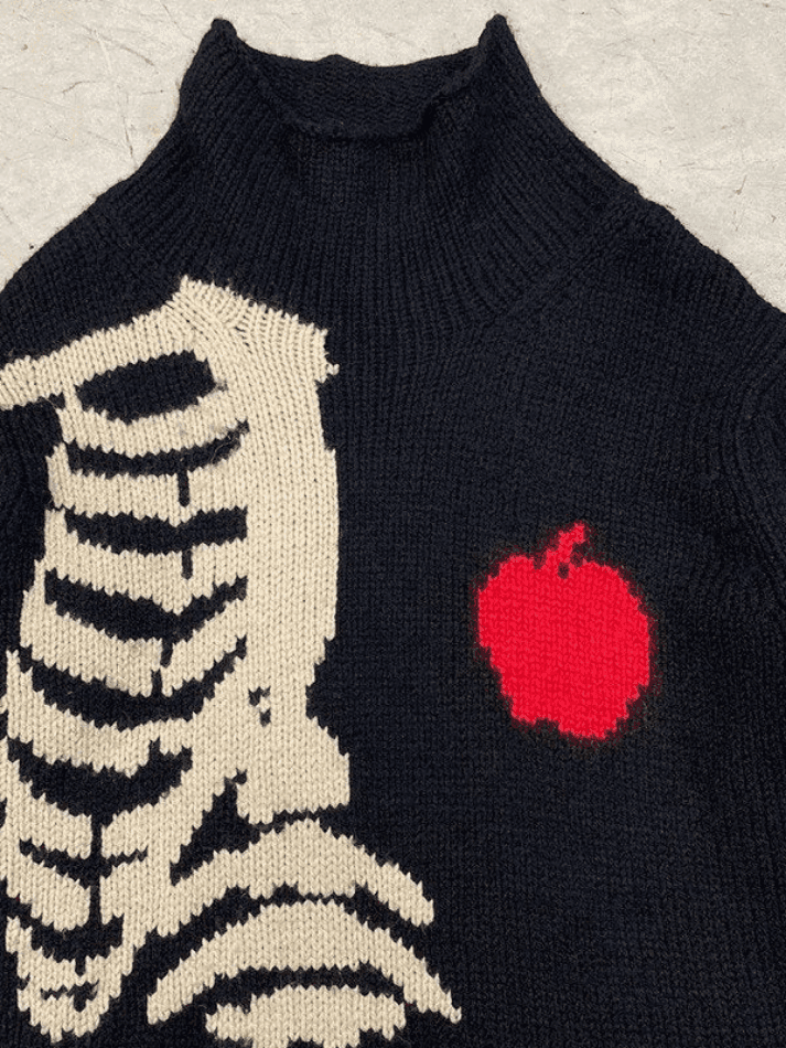 Description: Feel warm and cosy in winter season with these chic jumpers. Cuts to a relax silhouette. features dropped long sleeves. with skeleton bones and an apple jacquard detail to the front.