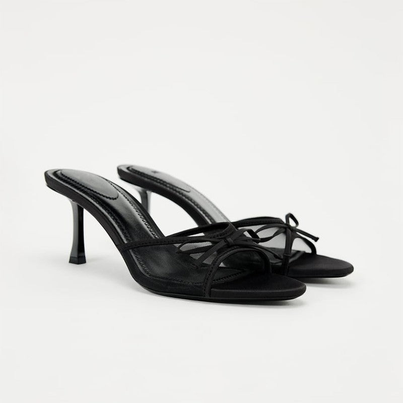 These bow heels is designed to elevate any outfit effortlessly. With a comfortable heel height. these stylish slip-on mules feature an open toe and a sheer with a bow strap. ensuring both elegance and comfort. Whether you're out for a night out or adding a chic touch to your casual look. these heels are the perfect addition to your seasonal collection