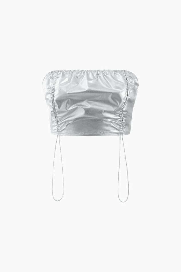 Increase quantity for Metallic Drawstring Tube Top And Gathered Pants