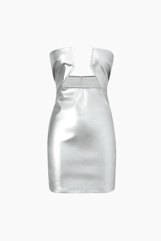Increase quantity for Metallic Leather Strapless Mini Dress