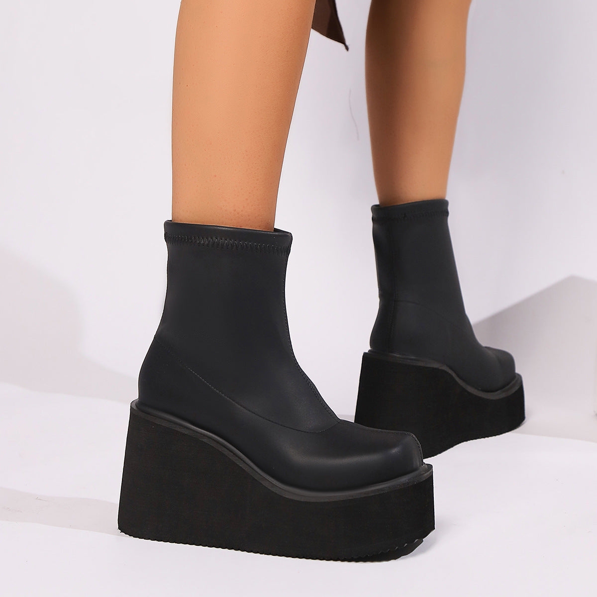 Elevated with a chunky stacked platform. these platform boots will add a stylish touch to any casual outfit.