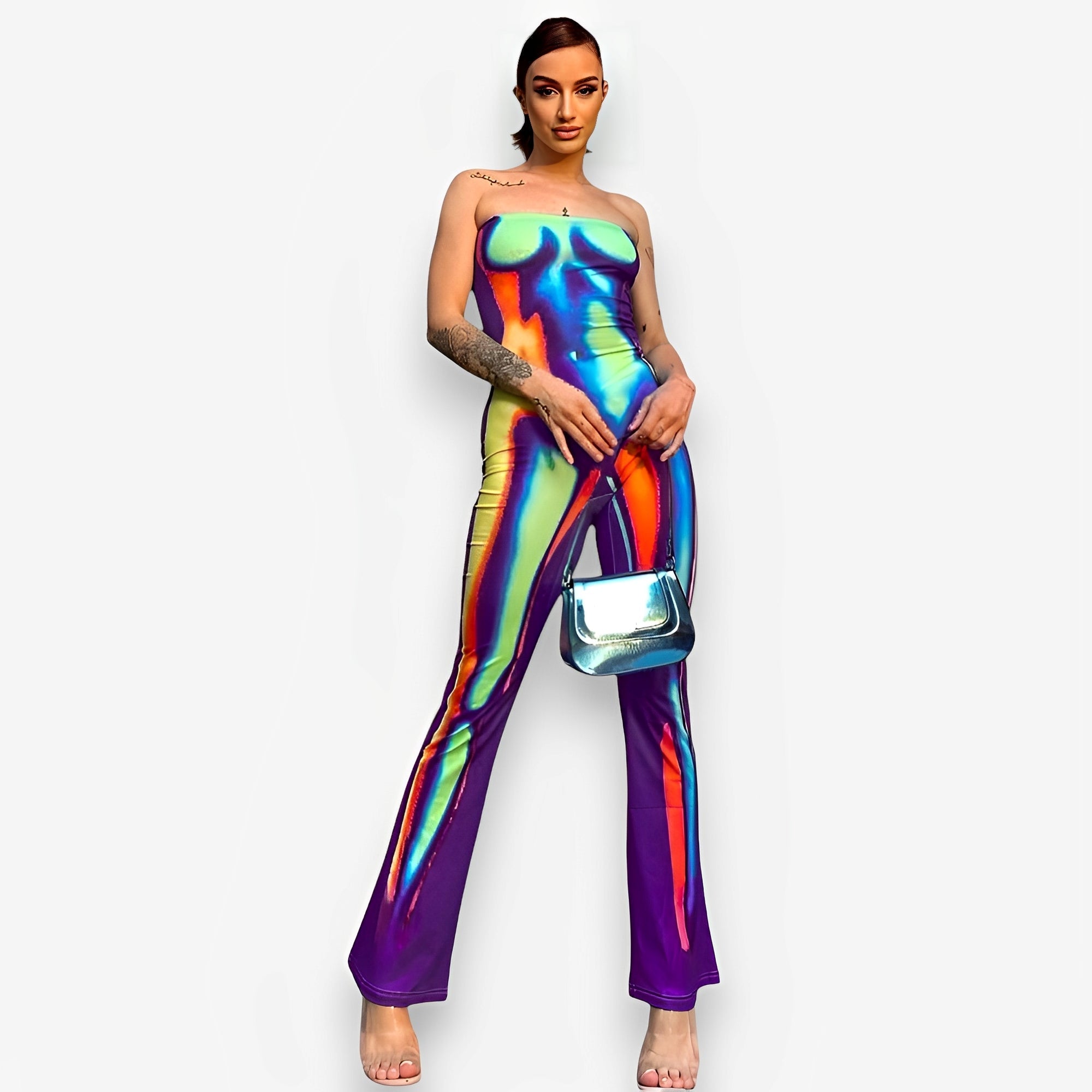 Get ready to lift up your style game with our multi-color printed slim fit butt lift jumpsuit! Flaunt your curves and make a statement with this unique and playful piece. Stand out from the crowd and show off your fun and quirky side with this must-have jumpsuit.