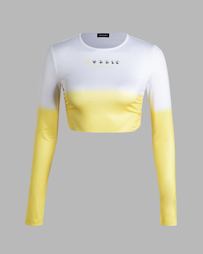Details: Matching color long-sleeve crop top with eye graphical print design