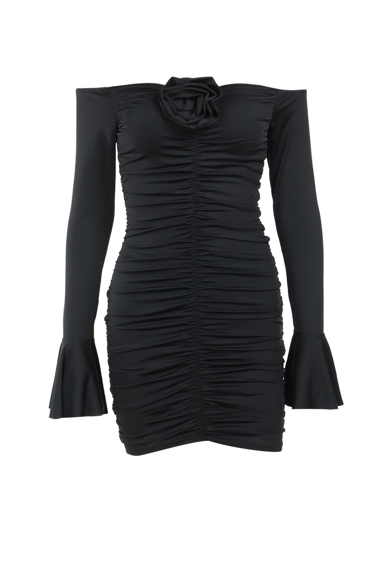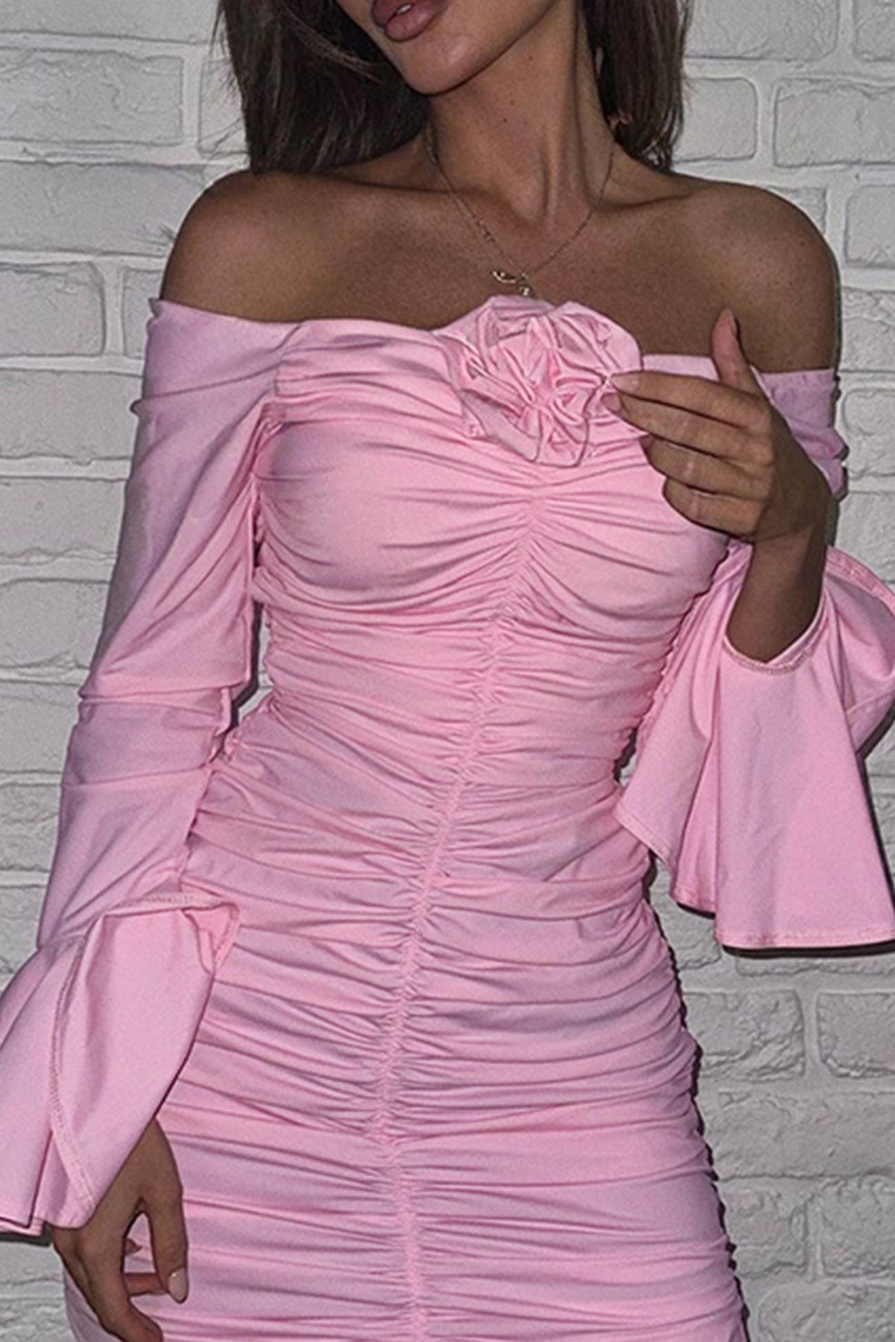 Off-Shoulder Flares Sleeve Floral Gathered Dress